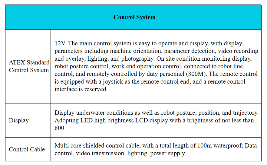The entire system consists of three parts: ground station, robot, and pipeline. Among them; The ground station includes a distribution box, hydraulic station, control cabinet, high-pressure water pump, cooling water tank, and pipeline winch; The robot includes a walking mechanism, a lifting lighting camera device, a suction head, a pushing plate, and a lifting hinge screw, high-pressure water nozzle; Pipelines include control cables, hydraulic pipelines, rescue steel cables, and high-pressure water pipes.