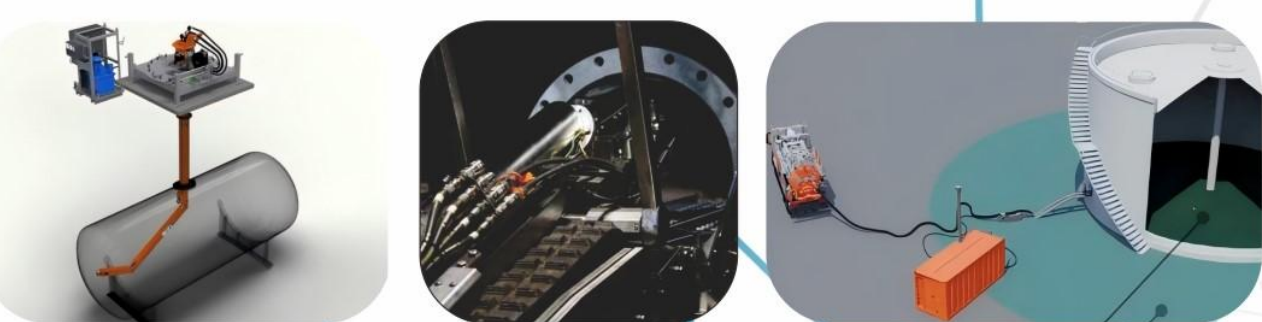 Using the high-pressure nozzle carried by the robot, rinse the dead corners and inner walls of the tank with a small amount of water, and remove the residual oil-water mixture. The mixture is then pumped by a vacuum transfer pump and transported to the sludge storage device.